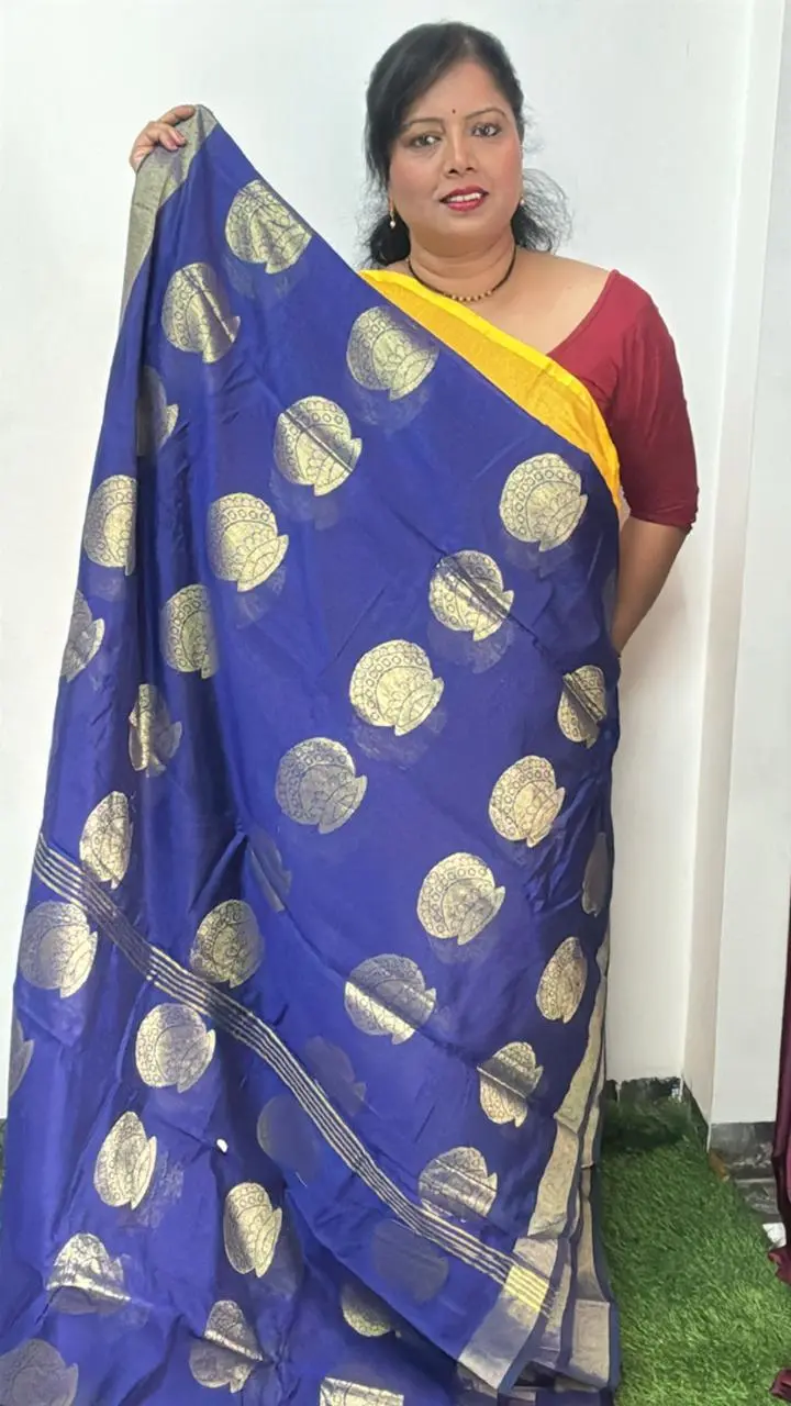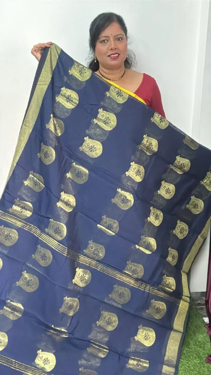 • The saree’s crisp feel and soft drape provide a contemporary look that is both elegant and easy to carry, a perfect choice for any occasion.