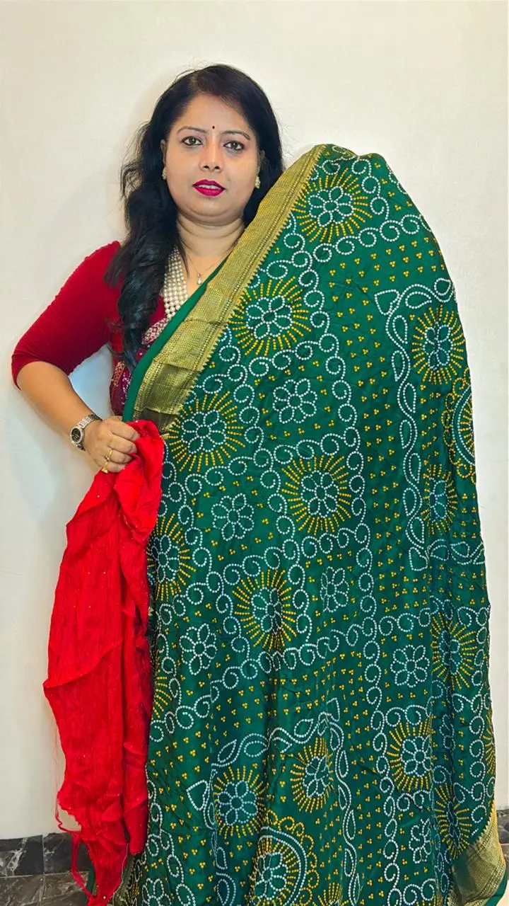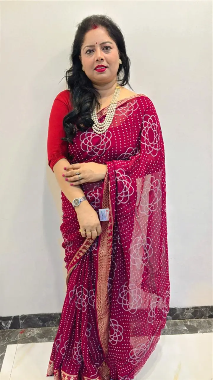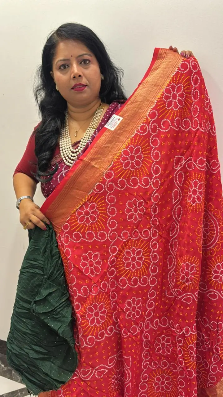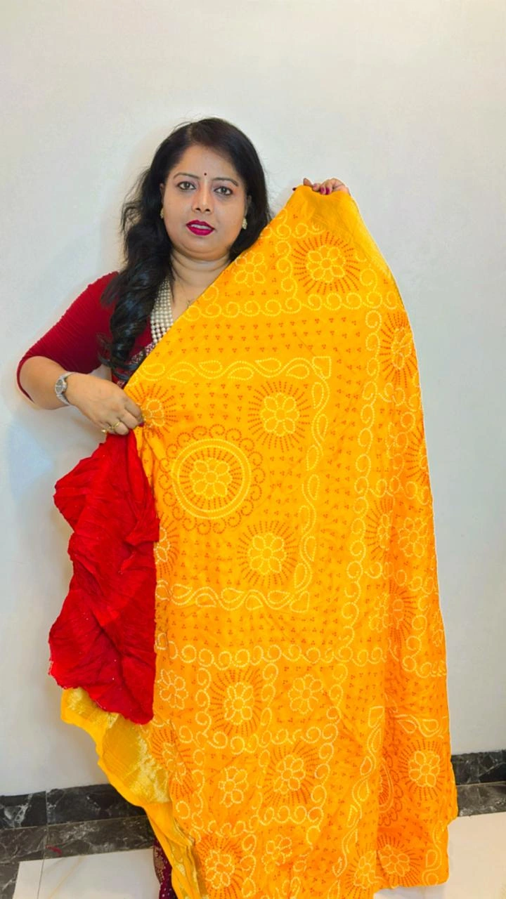 - The Pure Georgette Bandhani Saree is a celebration of vibrant tradition and graceful comfort.